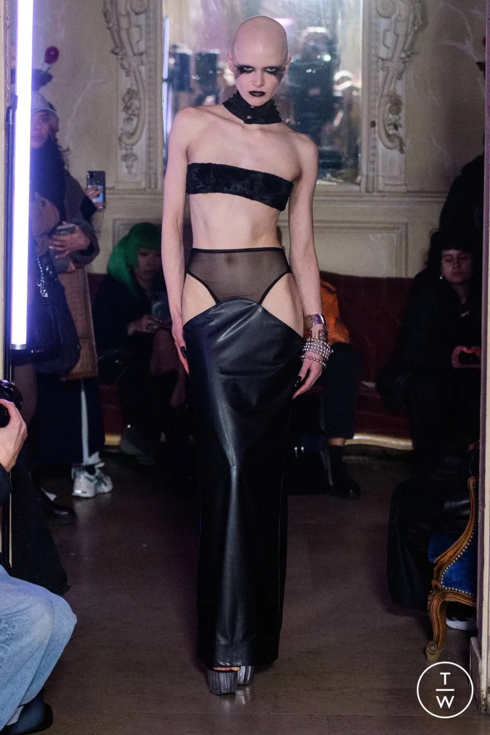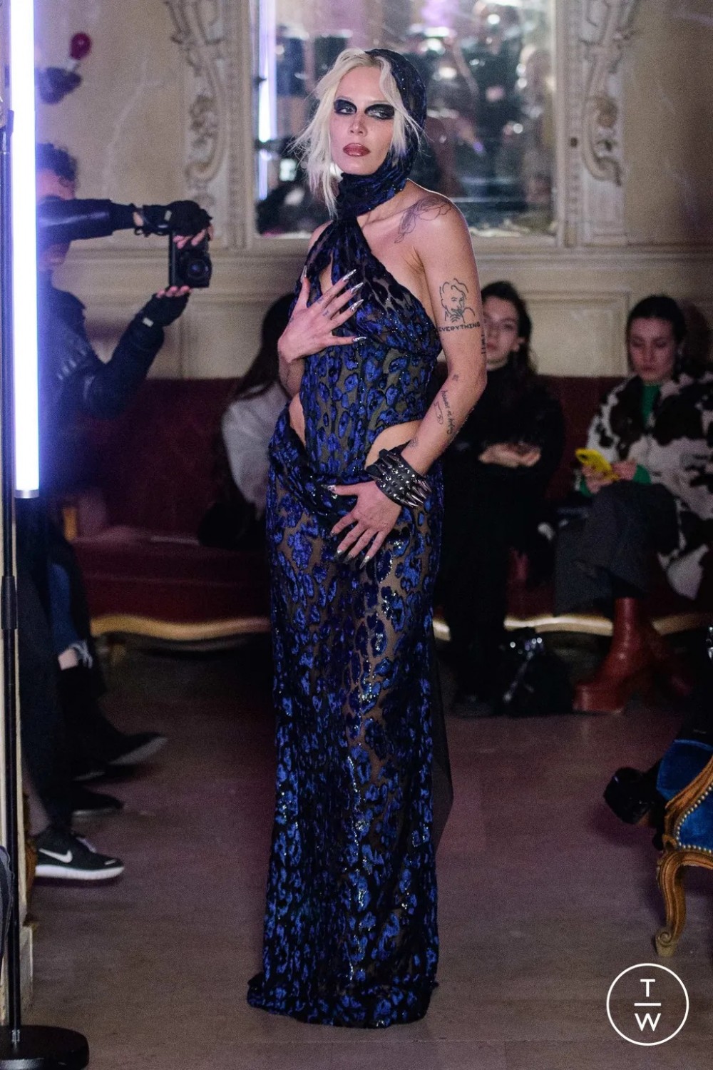 Венсан Прессиа — молодой французский дизайнер, который исследует гендерно-флюидную моду. Опыт работы с мастодонтами индустрии в лице Джона Гальяно в Margiela и Оливье Рустена в Balmain подарил Венсану возможность отработать собственный стиль – готическая сексуальность, но с французским шиком. Показ вновь прошел в тускло освещенном клубе в самом центре Пигаль – районе красных фонарей в Париже. Эстетика и место проведения удачно подчеркнули дерзкие и игривые образы бренда.