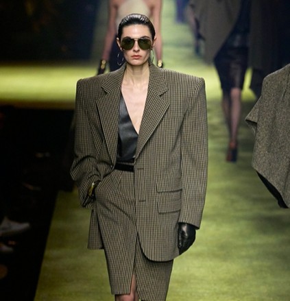 В садах Трокадеро на золотом подиуме в окружении огромных люстр модели демонстрировали скульптурные, соблазнительные силуэты и фасоны, подчеркивающие объем. В коллекции отчетливо чувствуется грань между помпезностью и чувственностью. Энтони Ваккарелло в очередной раз сумел привнести свое собственное виденье, при этом уважая наследие Saint Laurent. Акцент был вновь сделан на фасонах, а не на цветовой палитре. Особенный восторг вызвали образы, что были дополнены навязчивыми золотыми украшениями и солнцезащитными очками. В свою очередь, кожаные перчатки привнесли андрогинный аспект, а оригинальные и противоречивые шарфы имеют все шансы стать предметом первой необходимости.