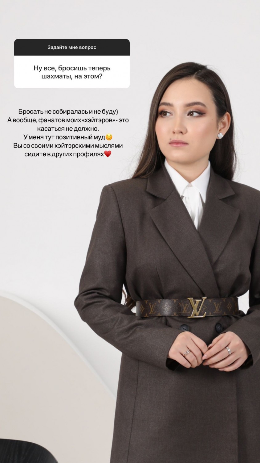 «Ал, енді шахматты тастайсың ба?» — деп сұрады Жансаядан Instagram парақшасында.