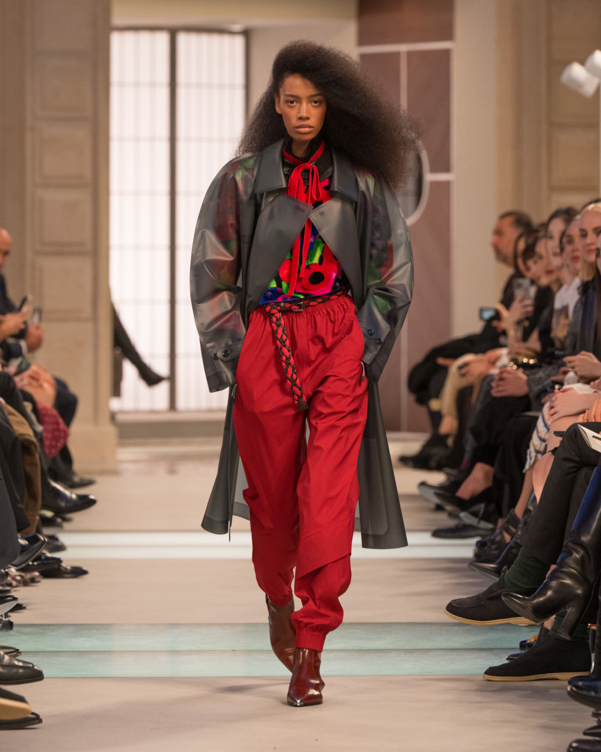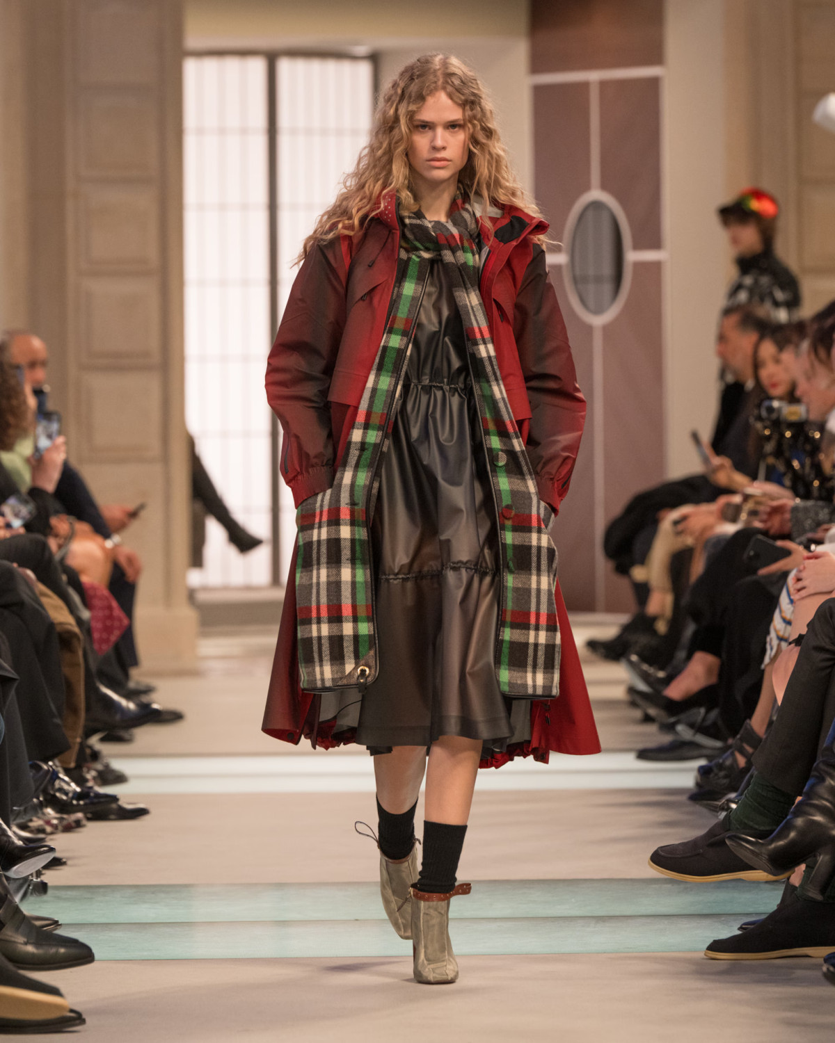 Одни модели будто возвращались домой на каникулы, закутавшись в теплые пальто и небрежно перекинув через плечо сумку. Другие казались готовыми к спонтанной поездке на природу. Особое внимание нашей редакции привлек образ сотрудника TGV в строгой униформе с галстуком — ностальгическое напоминание о первой поездке из детства самого Жескьера.