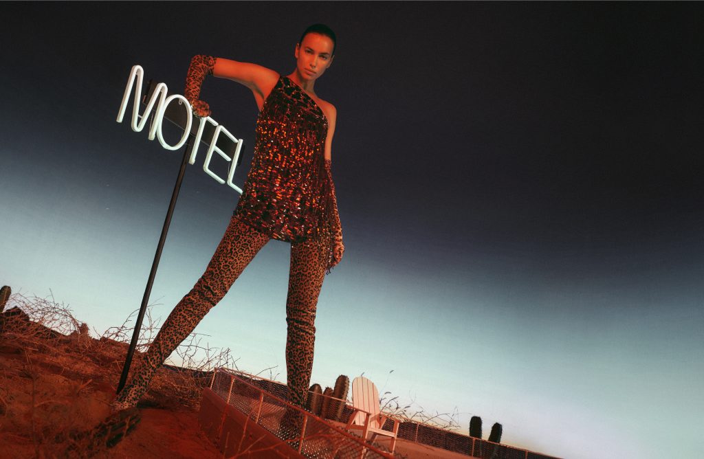 Шейк примерила образы с леопардовым принтом и показала новую модель сумки Pinko Love Bag Click. Ирина позирует на фоне американских пейзажей и встречающихся объектов по дороге из одного штата в другой в «хищном» total look.