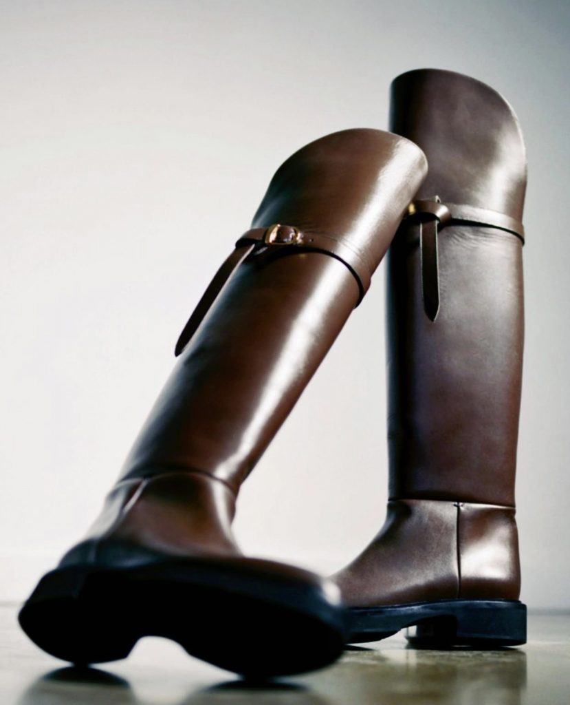 В этом сезоне в центре внимания: ботфорты, сапоги, вдохновленные конной эстетикой, модели со сборками и кожным переплетом. Отличительной чертой сапог в конном стиле является высота до колена, наличие низкого квадратного каблука и минимум декора. Жокейские сапоги по-прежнему на первых позициях в вишлистах у девушек и являются классическим элементом гардероба.