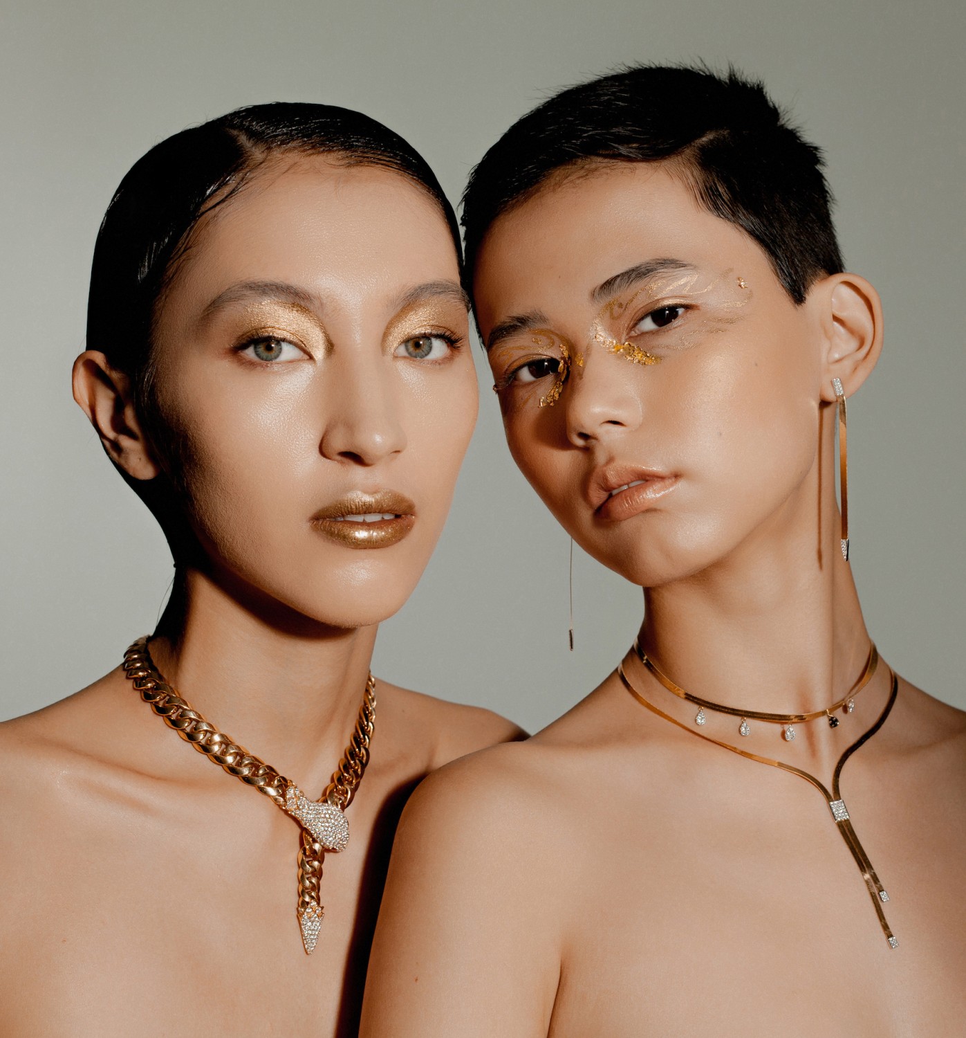 на Динаре: браслет из розового золота с бриллиантами и рубинами, все Crivelli (Constella); на Даяне: чокер, колье и серьги из желтого золото с бриллиантами из коллекции Glow, все Constella Z.подвеска, серьги, браслеты из желтого золота с бриллиантами, все Tirisi (Constella).чокер, колье и серьги из желтого золота с бриллиантами из коллекции Glow, Constella Z.браслет и колье из розового золота с бриллиантами и рубинами, все Crivelli (Constella)Серьги из розового золота с бриллиантами, Constella.