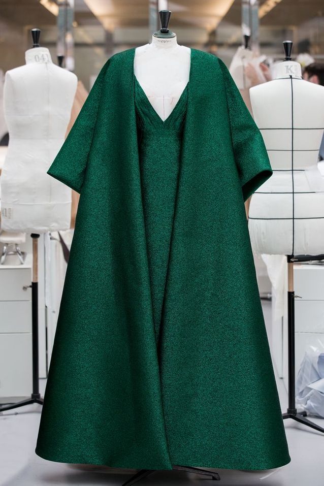 Изумрудное платье Ани произвело фурор и захватило социальные сети. Силуэт вдохновлен коллекцией Dior осень-зима 2018/2019. На создание наряда потребовалось более 300 часов работы. Платье выполнено из люрекса, верх с глубоким вырезом задрапирован, а тонкий пояс деликатно подчеркивает талию. Образ дополняет накидка в таком же изумрудном цвете.
